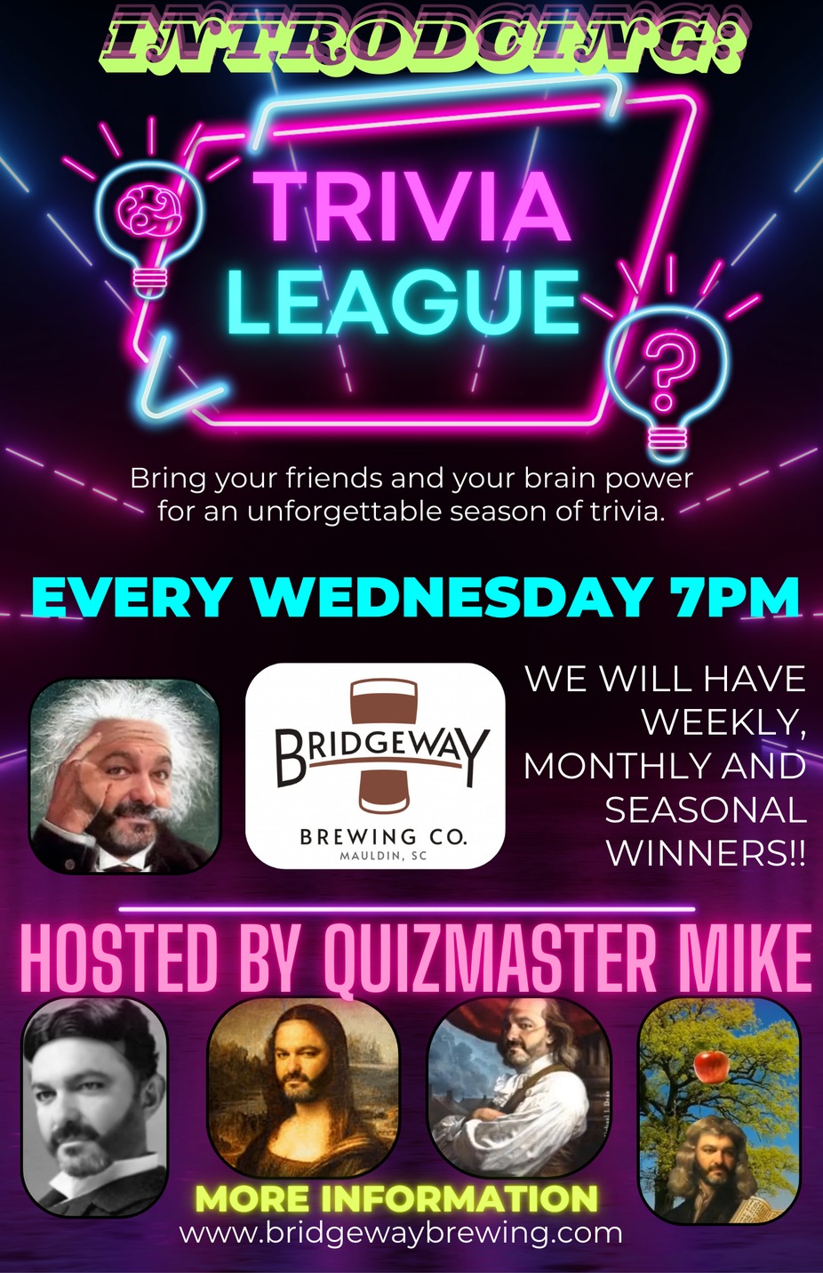 Trivia hosted by QuizMaster Mike. Weekly, Monthly and Annual prizes!