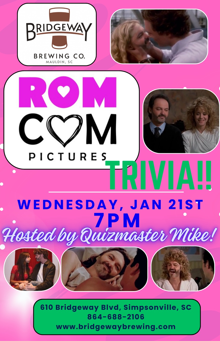Grab your trivia soulmate (or fly solo like a 2000s rom-com lead) and join us for Romantic Comedy Movie Trivia at the brewery! Expect iconic quotes, chaotic meet-cutes, questionable fashion choices, and plenty of beer-fueled nostalgia.