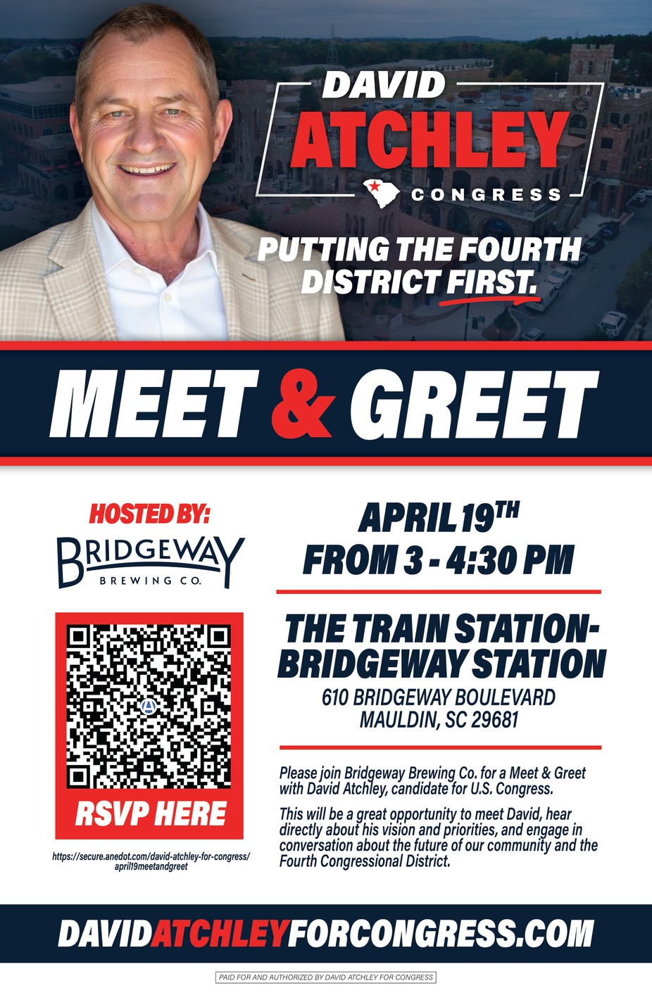 #BridgewayBrewing #MeetAndGreet #DavidAtchley #SCPolitics #UpstateSC #MauldinSC #CommunityFirst #LocalEvents #FourthDistrict #GreenvilleSC #SupportLocal #PoliticalEvent
