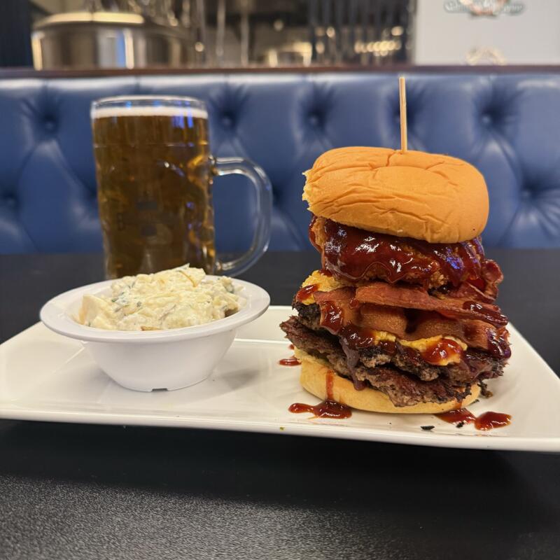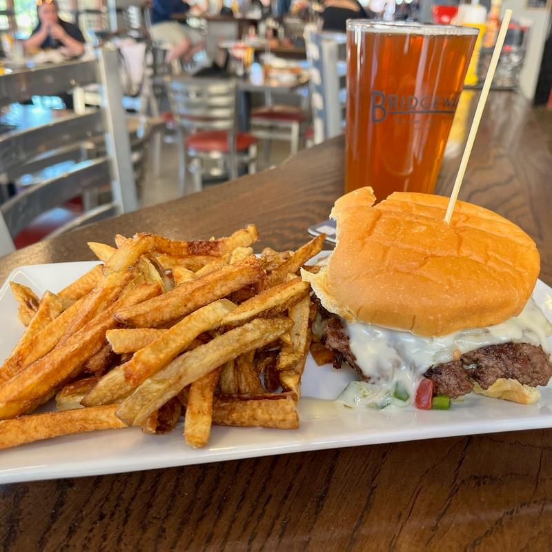 Two ground beef patties, smash-burger style on a toasty potato roll with your choice of cheese.