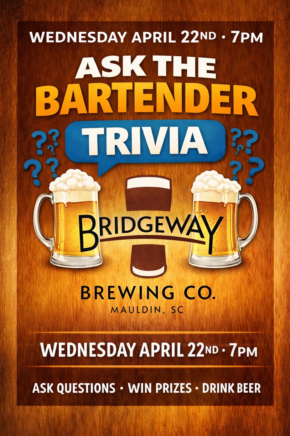Join us for Ask the Bartender Trivia Night at Bridgeway Brewing Co.! π§ Bring your best answers π Win some awesome prizes πΊ Enjoy great beer with even better company